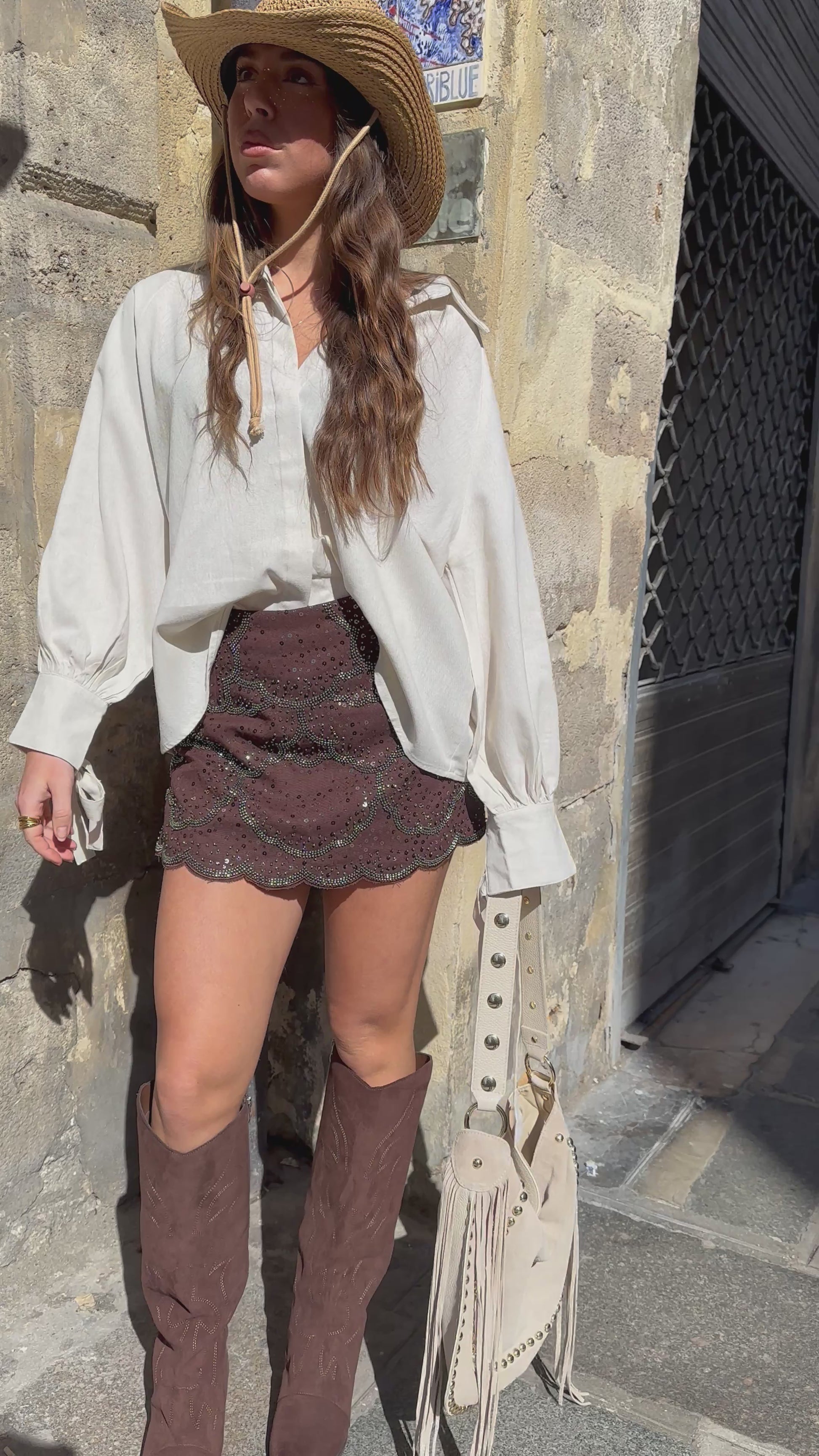 Jupe-short coupe courte avec broderies et sequins.